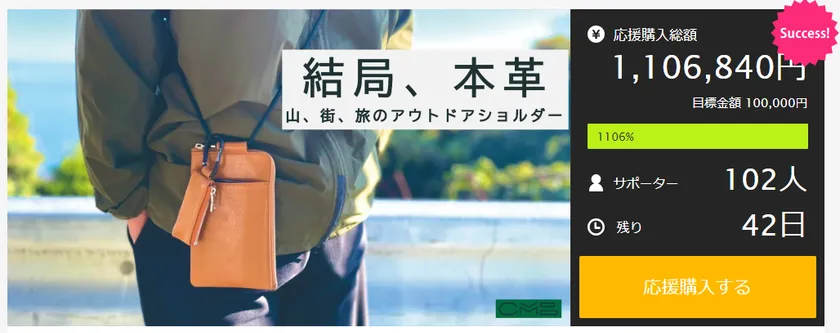 株式会社ワイエス(本社:兵庫県たつの市、代表取締役CEO:柴田 勝則)は、2022年12月17日(土)からクラウドファンディングサイトMakuakeで「オイルヌメ革」を使ったアウトドアショルダーのプロジェクトを公開。開始1日で達成。12月19日時点で目標の1,100%越えを報告します。