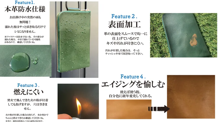 大きく分けると4つの意見が多かったので,その4つの特徴をすべて兼ね備えたアウトドアショルダー専用の革『オイルヌメ革』が完成。ソフトでコシのある質感で急な雨でもOKな撥水加工が表面に施され、素上げのスムースで均一に仕上げ、最後にふんだんにオイルを含ませているのでキズや汚れが付きにくい。そして、クローム鞣しとタンニン鞣しの良いとこ取りをしたコンビネーション鞣しを採用することにより、両方の長所を取り込むことができた。高い耐久性を誇りながら、柔らかく伸縮性に優れ、発色も良い。使えば使うほど自分色に経年変化も楽しめる、『アウトドアショルダー専用の革』が完成。
