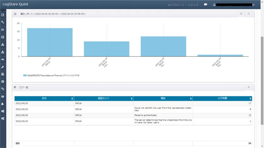 Themisの認証ログレポート例。1日あたりの認証失敗の件数や理由が把握できる