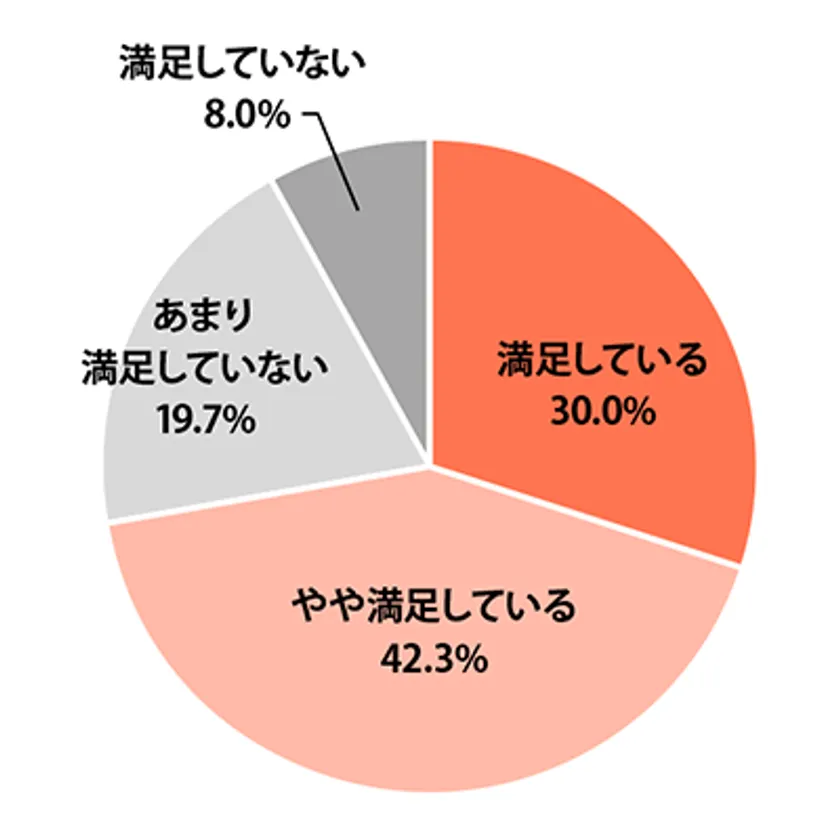高校生活を振り返り、どの程度満足しているかをお聞きすると、「満足している」30.0%、「やや満足している」42.3%と計72.3%が高校生活に「満足している」と回答しました。