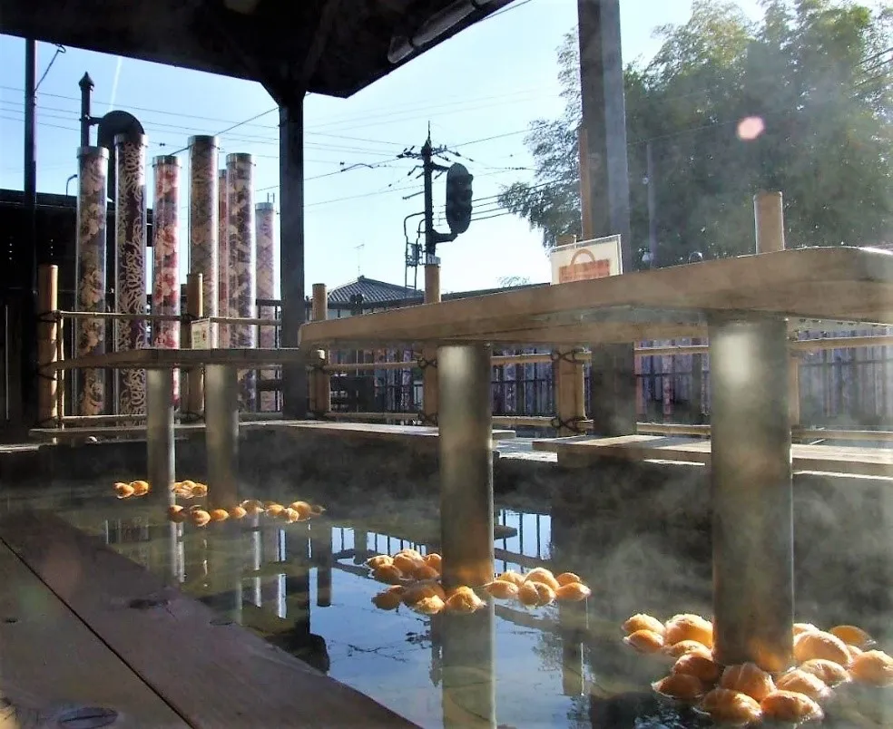 嵐山温泉には冷え症の緩和や疲労回復などの効能が、また柚子の香りにはリラックス効果があると言われており、約10分で体が芯から温まります。