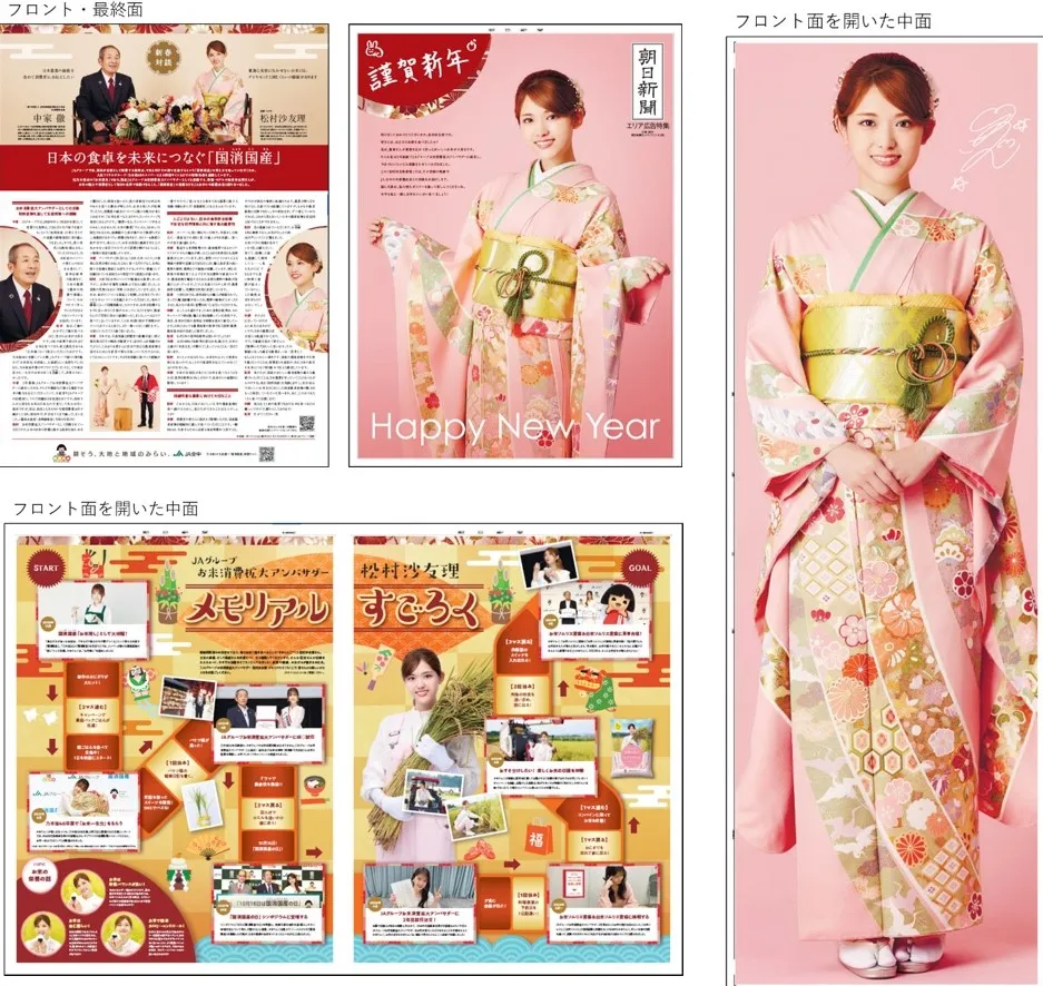 広告特集紙面では、振袖姿の松村沙友理さんのほぼ等身大ポスターや、「お米ソムリエ&白米ソムリエ資格」取得に向けた挑戦の軌跡、特別新春すごろく、JAグループが推奨する「国消国産※」に関するJA全中の中家徹代表理事会長との対談などを収載している新春特別内容となっています。