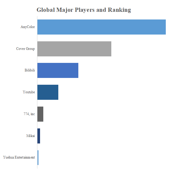 QYResearchのトップ企業研究センターによると、バーチャルアイドルの世界的な主要製造業者には、AnyColor、Cover Group、Bilibili、Youtube、774, incなどが含まれている。2022年、世界のトップ3企業は売上の観点から約15.0%の市場シェアを持っていた。