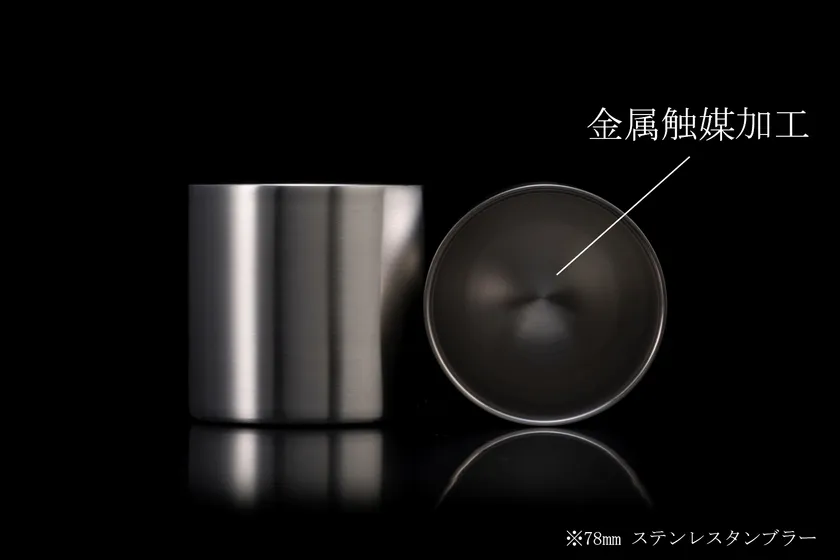 当社の既存商品であるステンレスタンブラー「78mm」は、タンブラーの内側部分に金属触媒加工が施されています。そのため、飲料を注いだ際に飲み物と触媒加工部が接触し続け、飲み物の味が変化し続けてしまいます。