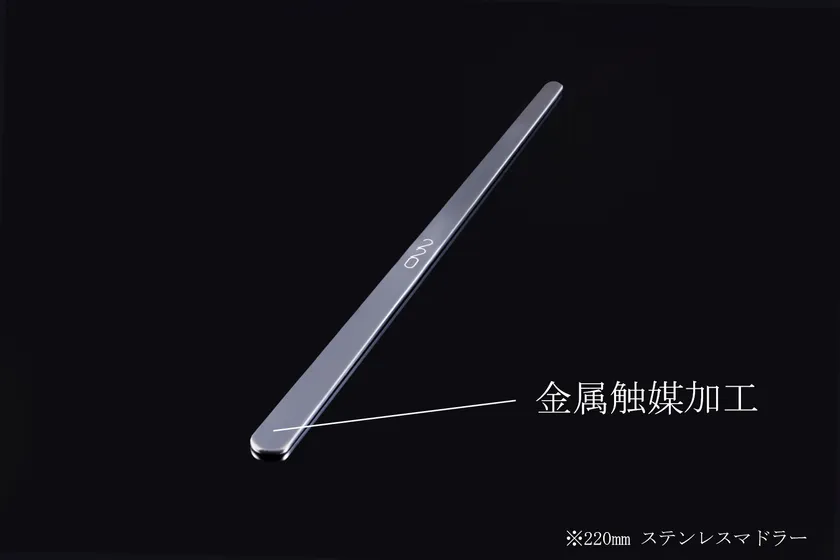 これを解決するために生まれたのがステンレスマドラー「220mm」です。「220mm」はマドラーの先端部分に金属触媒加工を施しているため、ユーザー自身がマドラーをかき混ぜることで飲み物の味を変えることができるようになりました。