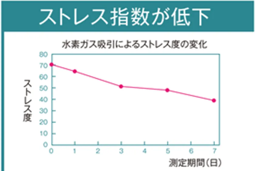 水素ガスを1週間毎日朝晩30分間吸引した結果、ストレス指数が低下していきました。また自律神経の交感神経と副交感神経はともに向上し、交感神経と副交感神経の比で表される自律神経均衡には影響はほとんど見られませんでした。