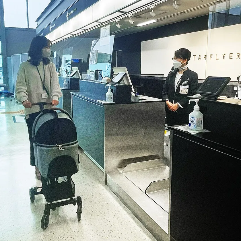 空港も機内もペットカートでスムーズに移動! ペットとの楽しい空の旅を提案 スターフライヤーの機内ペット同伴サービス 「FLY WITH PET !」にエアバギーのコンパクトカート 「AIRBUGGY FITT SERIES WIZ(ウィズ)」が採用されました