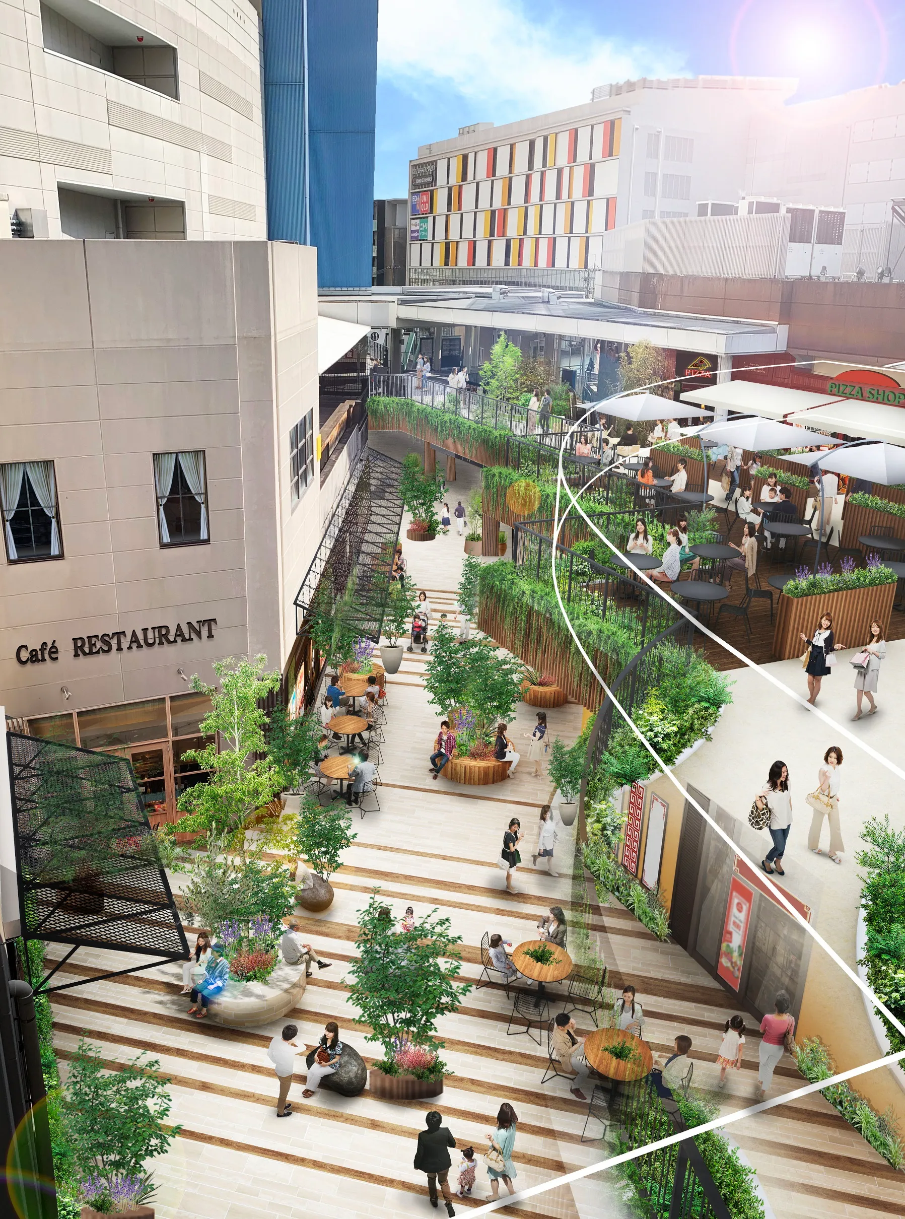 今回の改装は「食」の充実を軸とし、今までご好評いただいてきたフードコートとダイニングストリートの2エリアにおいてリニューアルを実施。フードコートについては周辺の食物販エリアと合わせて“フードマルシェ”を構築するほか、ダイニングストリートは植栽やテラス席の整備を行うことで、魅力的なレストランとあわせて「緑あふれる気持ちの良い空間」とし、利用者にこれまで以上に楽しんでいただけるエリアを目指します。