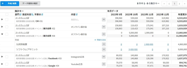 ・予算ID/明細機能(※)など、勘定科目よりも細かい単位での予実管理に適している点