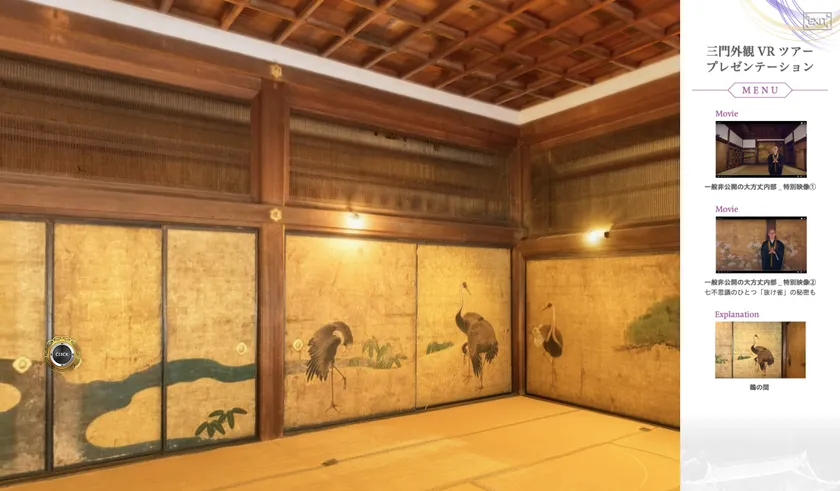 写真4) clickボタンを押下するとプレゼンテーション機能が拡張(写真は知恩院 大方丈【鶴の間】)