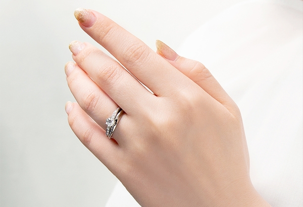 ■形状にこだわり、幅広いデザインの婚約指輪と重ね着けが可能