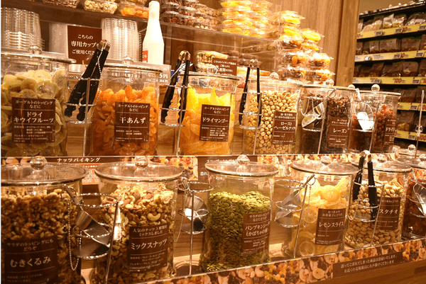 専用カップに好きな種類のドライフルーツ・ナッツを入れられるバイキングコーナーを導入!