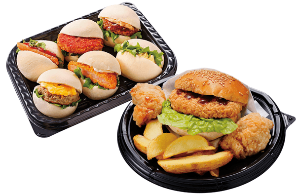 惣菜コーナーの「あまに豚入りコロッケ」を小麦の郷自慢のパンで挟んだバーガーに、純和赤鶏むね塩唐揚げ、ポテトをセットにしたバーガーBOXをご用意いたします。