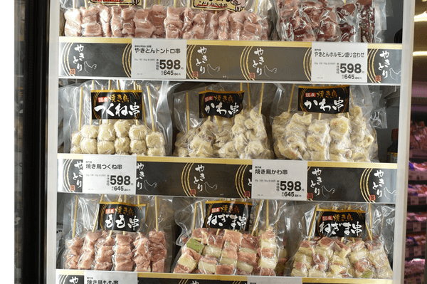 国産の鶏肉を使用した冷凍の生焼鳥コーナー。これからの暑い夏、家飲みのおつまみやBBQにもおすすめ。