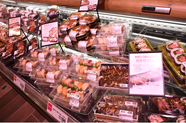 店内で白だしに漬け込んだ“漬けにぎり”や、食べ応えのあるローストビーフを使用した肉寿司などを品ぞろえします。