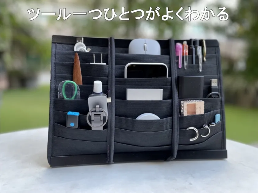 1.バッグの「あれ?どこいった?」「ああ!入らない!」「小分けが足りない!」という3大不満を一気に解決