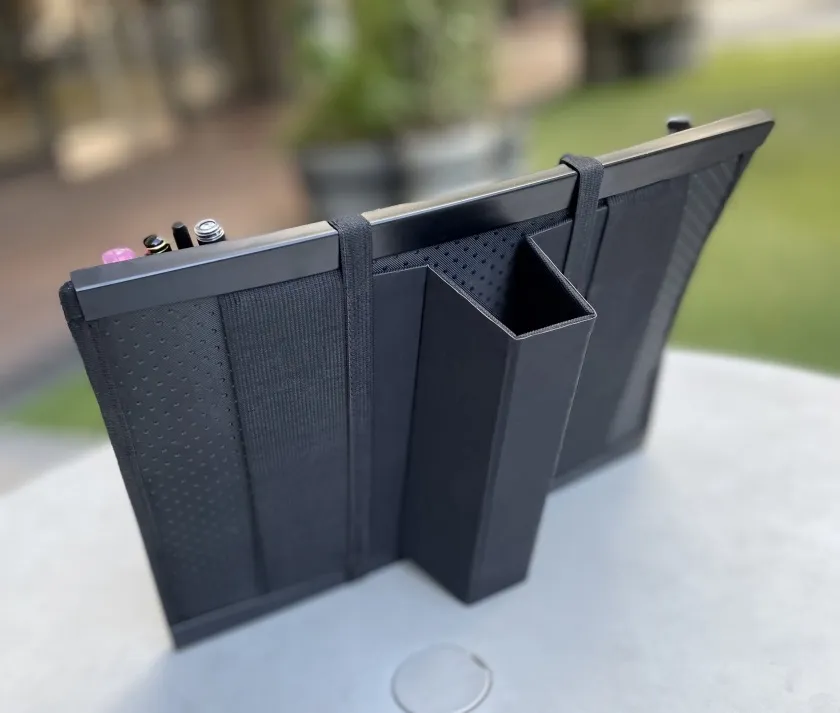 限られたワークスペースを効果的に利用するため、マルチラの裏側にスタンドプレートが設けられています。このプレートを引き出して自立させると、デスクやテーブル上のわずかな面積で多様なツールを立体的にディスプレイでき、散乱しがちなデスクをすっきり整理。