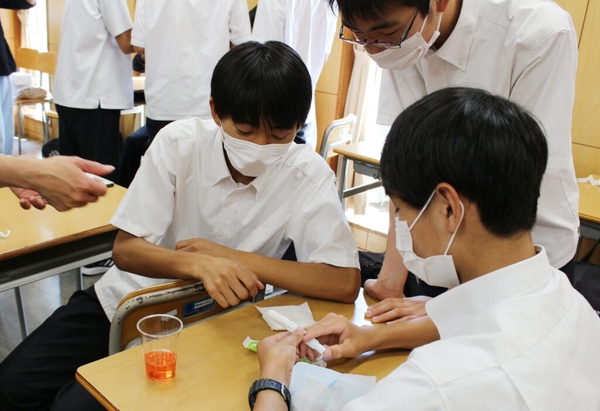 男子生徒の回では、生理についての基本知識はもちろん、生理用品を実際に触れてみたり、「1回の生理でどれくらいの生理用品を使うのか」「1か月あたり、生理にかかる費用は?」など、数字を交えて学んだりすることで、生理がない男子にも分かりやすい内容で行われました。
