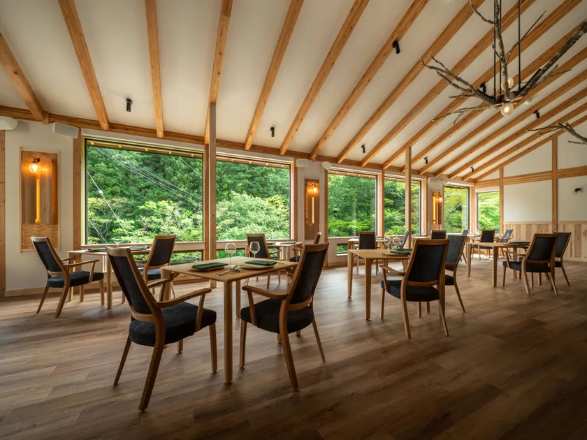 信州のおもてなしをテーマにしたフレンチのフルコースを提供するレストランです。国内では珍しい木製の屋根が付いた「五台橋」や、日本三大文殊の1つで長野県の県宝に指定された「文殊堂」が目の前に見え、店名の由来となった内村川の溪谷と、ここに訪れなくては観ることができない美しい景観が魅力です。