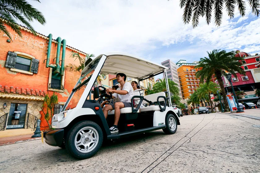 美浜エリアの主要ホテルやアメリカンビレッジなどの商業施設へ無料で移動できる自動走行カート