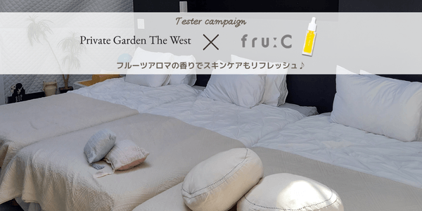 キャンペーン期間中は、フルーツ由来のビタミンC美容液「fru:C(フルーシー)」を『Private Garden』の各お部屋にご用意いたします。
