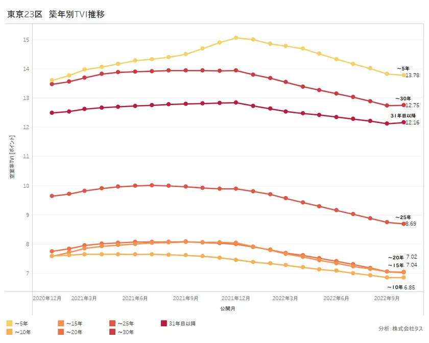 1. 東京23区の築年別空室率、復調の兆しが見えてきたか