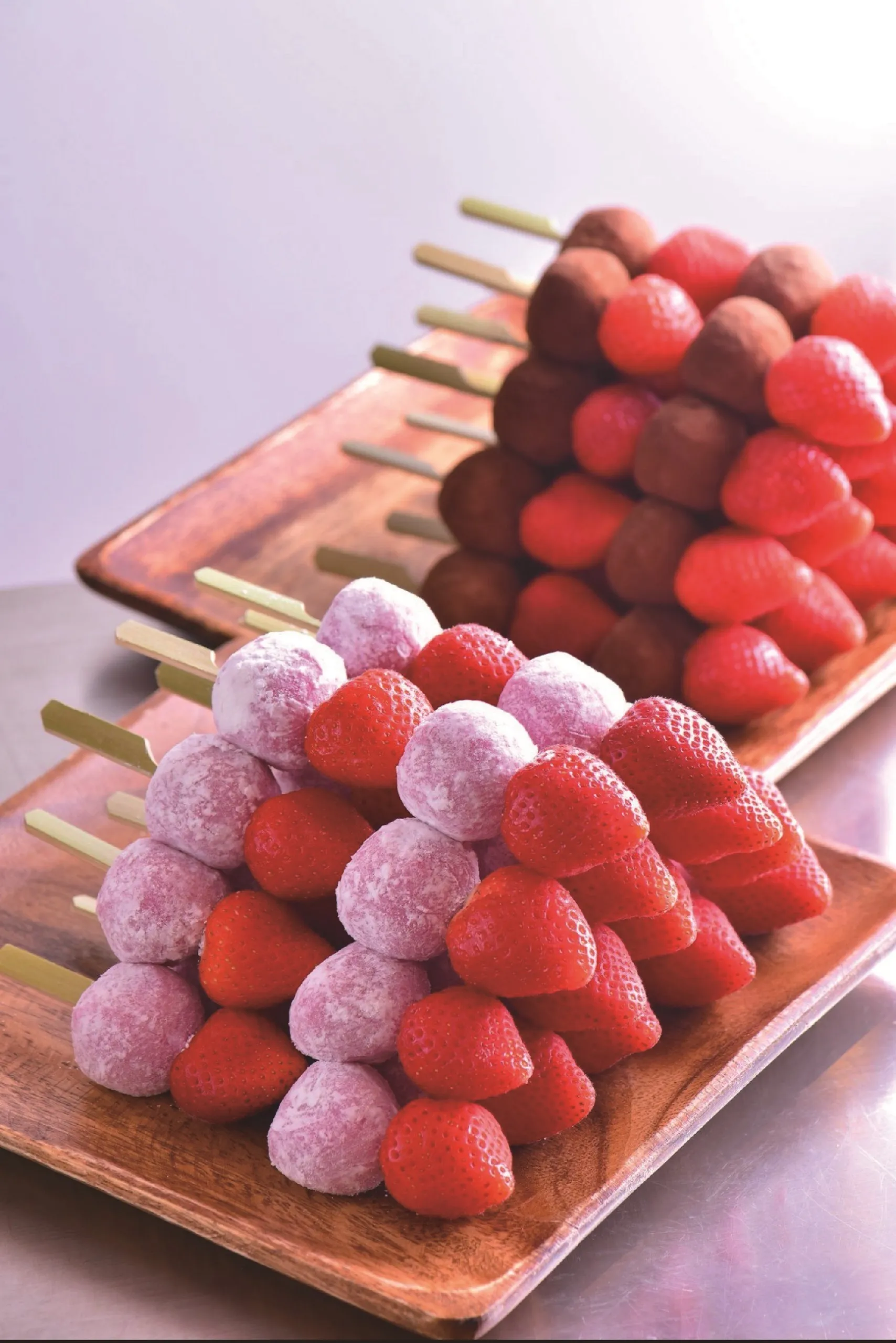 北海道発祥のいちご大福専門店。地元産のもち米と小豆、契約農家直送の苺など、素材にもこだわった「いちご大福」や、「いちご大福串」(1本 400円)をご用意しました。