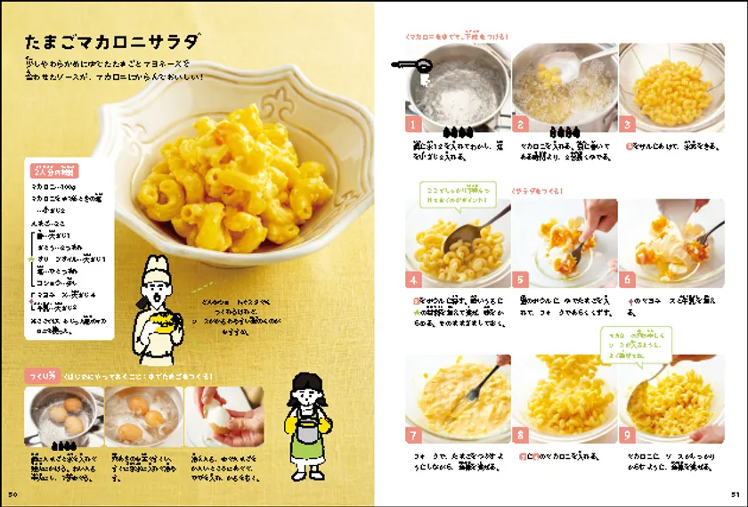 豊富な工程写真とやさしい表現の解説でわかりやすい(たまごマカロニサラダ)