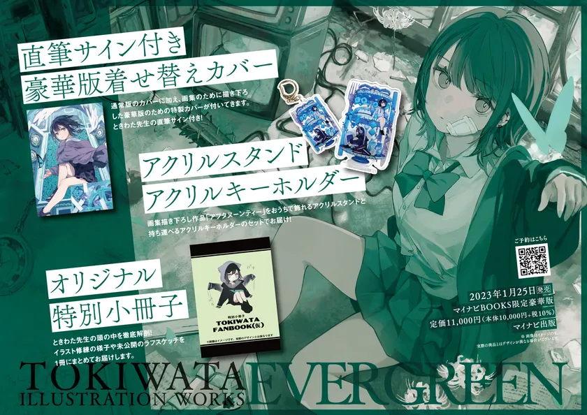 株式会社マイナビ出版(本社:東京都千代田区)は、人気イラストレーター「ときわた」さんによる初めての画集『ときわた画集 EVERGREEN』を2023年1月24日に発売します。本画集の発売を記念して、『ときわた画集 EVERGREEN』オリジナル特典付きセットをWebサイト「マイナビブックス」および「amazon.co.jp」にて販売いたします。