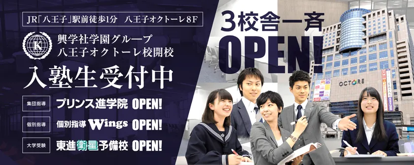 生涯教育を推進している学習塾 興学社学園グループ 八王子オクトーレ校 プリンス進学院・個別指導Wings・東進衛星予備校の3校舎 2023年2月開校