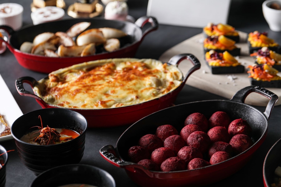 今回は、ミュージカル『キャッツ』に登場するキャラクター全27匹を、その見た目や特徴、名前をモチーフにすることで、料理とスイーツで表現。その他、『キャッツ』の世界観からインスピレーションを得たシェフが考案した、“ゴミ捨て場に浮かぶ月をイメージしたパイ包みスープ”や“ゴミ箱に捨てられたハンバーガー”、“猫の足跡が付いたアップルパイ”、“個性あふれるジェリクルキャッツをイメージした、多数の食材が入ったパングラタン”などをメニューに取り入れました。