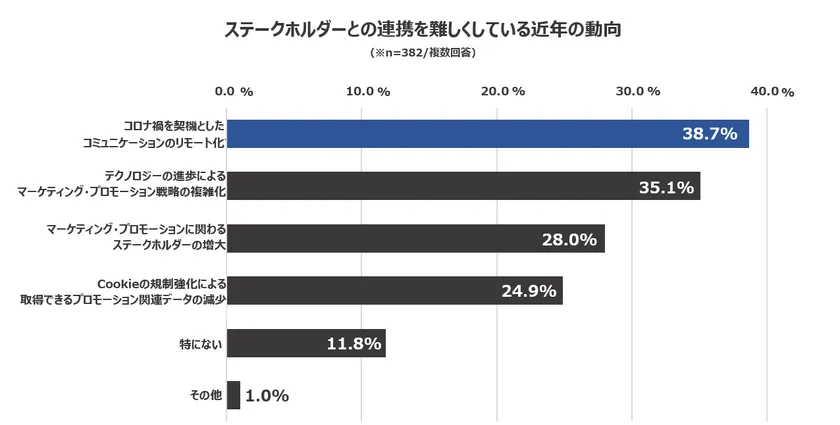 近年の動向のうち、ステークホルダーとの連携を難しくしている原因について調査し、以下の結果を得ました。