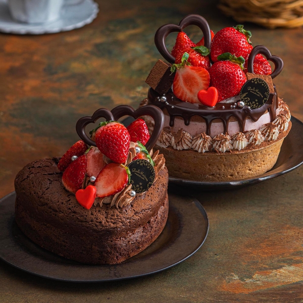 しっとり焼き上げた濃厚なガトーショコラ。甘みと酸味のバランスがよく、コクがある紅ほっぺを飾り、可愛らしいハートチョコレートをあしらいました。