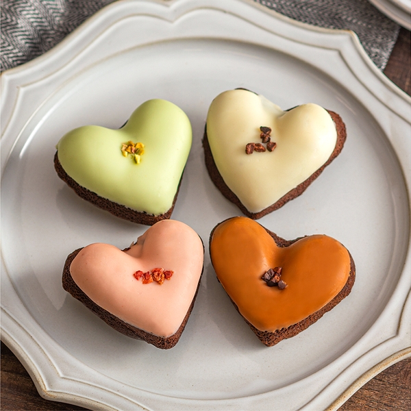 さっくりとした生地にとろけるガナッシュをとじ込めた、ハートの形のベイクドショコラ。可愛らしいいちごとほろ苦いキャラメルチョコレート、ピスタチオ、ホワイトチョコレートの4種を詰め合わせたプチギフト。