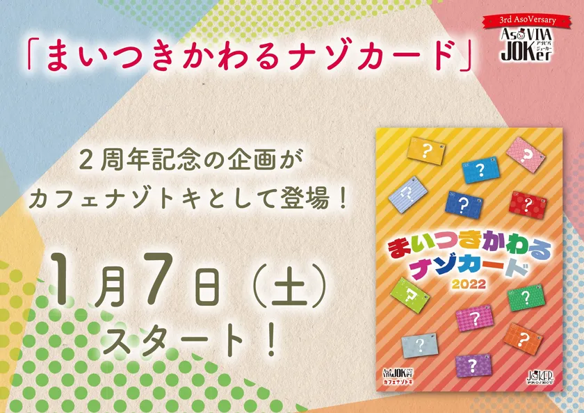 茨城県土浦市にある謎解き&ボードゲームカフェ「AsoVIVA JOKer」は2023年1月11日に開店3周年を迎えることを記念して、イベントを開催することとなりました。