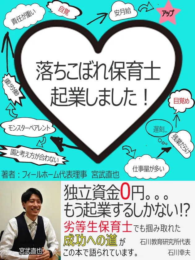 幼児教室「キッズスクール アップル富ヶ谷」を運営する特定非営利活動法人フィールホーム(所在地:東京都渋谷区)の代表理事、宮武 直也は「落ちこぼれ保育士、起業しました!」を出版いたしました。