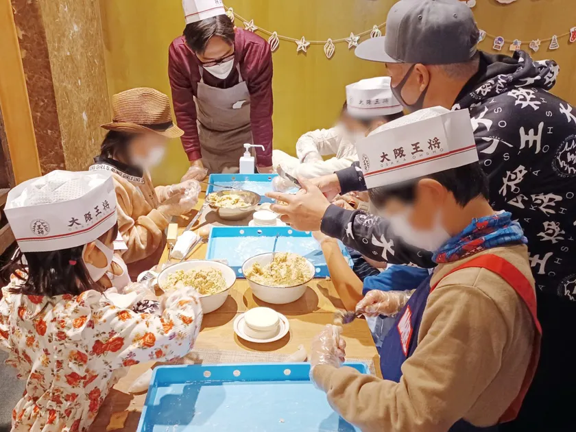 大阪王将の餃子職人による餃子の包み方レクチャーが行われ、子ども達が自らの手で餃子を作る体験をしました。餃子の作り方を初めて知った子どもも多く、悪戦苦闘しながらも自分で料理を作ることの楽しさを感じている様子でした。