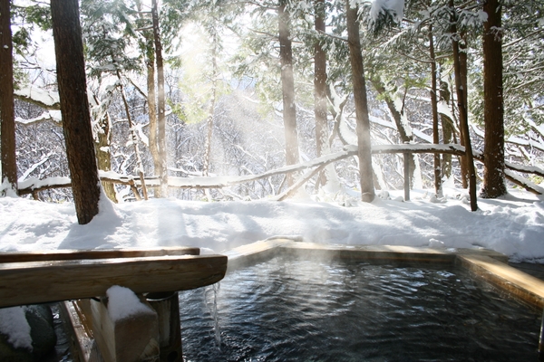 豊かな自然と一体になれる、自家源泉かけ流しの湯。