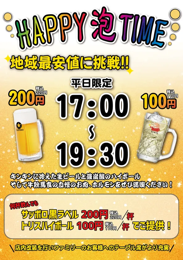 さらに平日は「ハッピー泡タイム」でさらにお得に!!