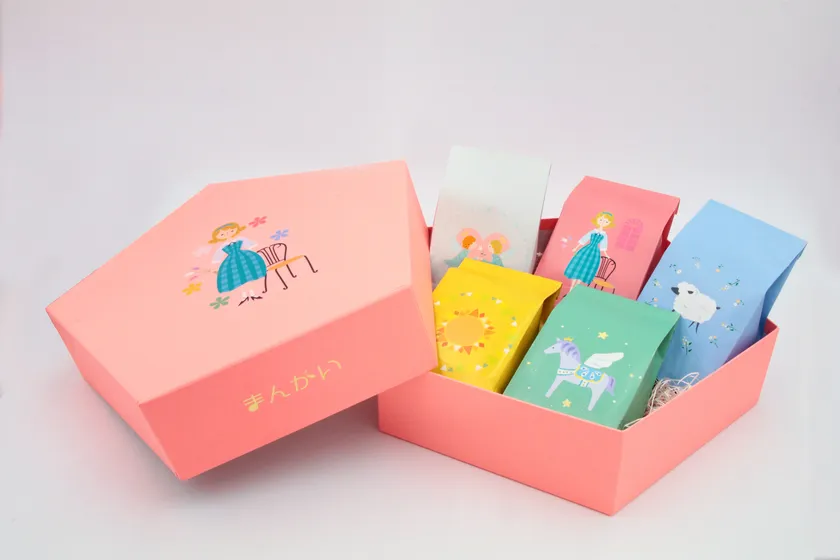 まんかいをイメージした高級感のあるかわいいパッケージデザインで、受験生がいるご家庭に贈るギフト商品としてオンラインストアと自社店舗で販売を開始し、百貨店や催事での販売も計画しています。