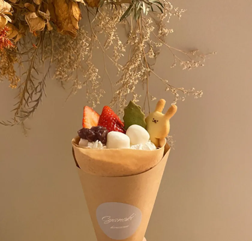 トレジャーふぁーむ敷地内で新規にオープンした宝達志水店では、クレープの生地を「プレーン生地」か「苺生地」のどちらかを選ぶことができます。