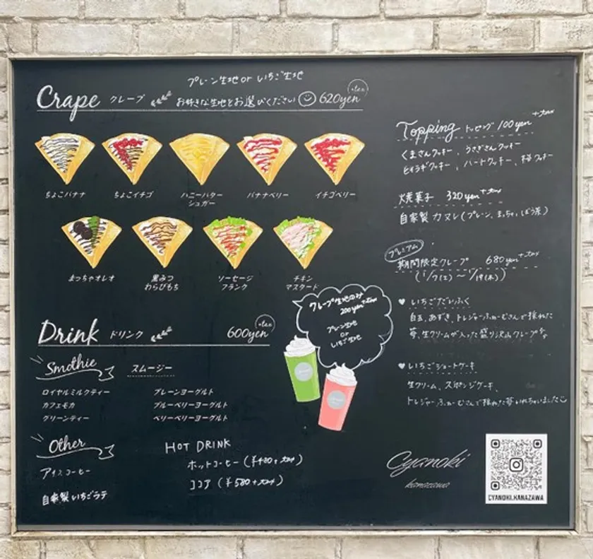 素材にこだわった多種多彩なクレープと、珍しいドリンクが楽しめる人気カフェ『チャノキカナザワ』が、トレジャーふぁーむ敷地内にOPENしました。昨年8/13(土)~11/27(日)の金、土、日曜に期間限定で銀杏並木前で販売してましたが、トレジャーふぁーむのいちご狩りシーズンに合わせてコラボすることになりました。