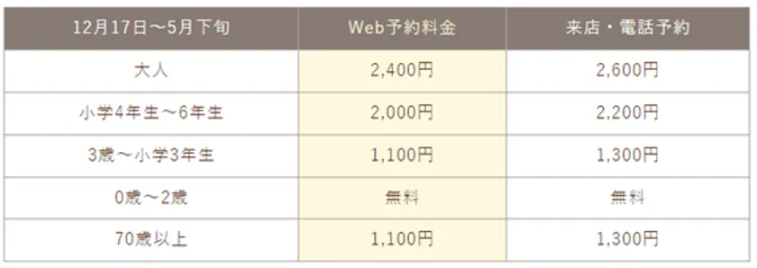 <2022-2023年いちご狩り料金表>