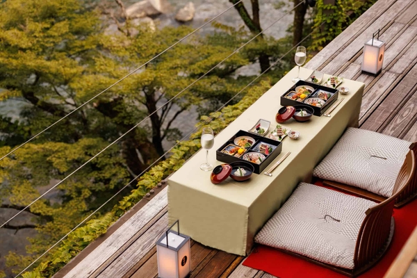 【星のや京都】~嵐峡の新緑を望む空中茶室や屋形舟を貸し切り、季節の夕食や新茶を堪能~新緑の薫りに包まれ過ごす滞在プログラム 「風薫(かぜかお)る星のや新緑滞在」提供|期間:2023年5月10日〜6月15日