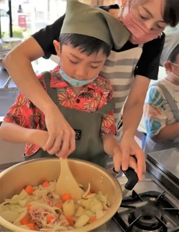 八幡支店運営委員会は、支店管内にある市橋保育園と連携して、「みんなでつくろう!いちはしカレー!」をスローガンに、同園と取り組みを進めました。支店運営委員らが定期的に足を運び、園内で年長児11人とカレーの食材となるナス、ニンジン、トマト、ピーマンのプランター栽培やバケツ稲づくりを支援しました。カレー作り当日は、同JAが不足分の米や豚肉を提供し、地場産食材がたっぷり入ったカレーが完成しました。参加した園児らは「自分でカレーを作るのは初めてだったけど、最後まで頑張って作った」と話しました。