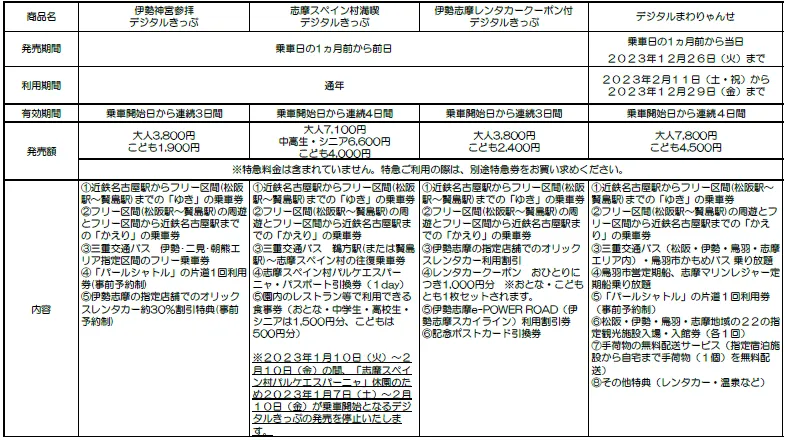 2.現在発売中のデジタルきっぷ(2023年1月11日現在)