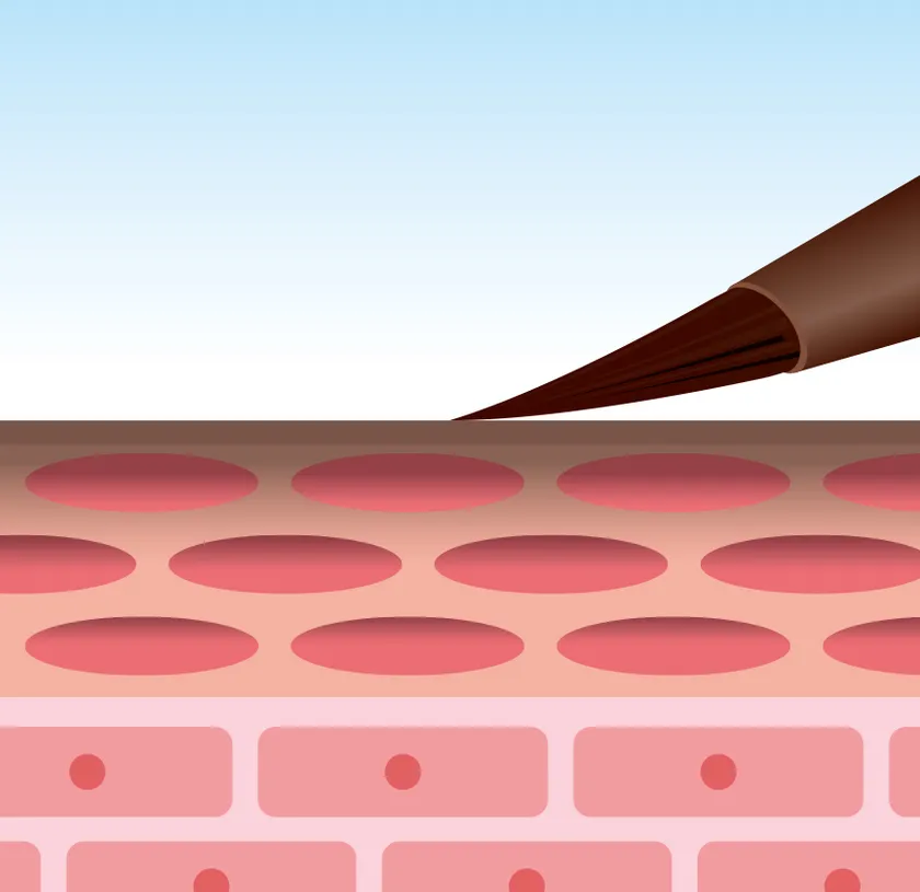 この働きを「セルフタンニング」と言います。ジヒドロキシアセトンは、日やけ演出用ローションにも使用されている成分で、アイブロウティントに応用しています。