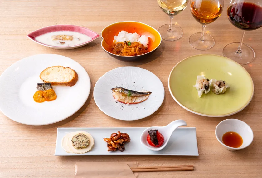ご飯のおともに、お酒のおつまみに愛されている日本の伝統食品・佃煮ですが、今回はワインにも合うように食ジャーナリストのマッキー牧元氏に監修をお願いし、料理家のうすいはなこさんにメニューをご考案いただきました。ワインとのマリアージュを楽しめる、佃煮を使用した新感覚のお料理は全部で8品。これにワイン3杯(白・オレンジ・赤)をペアリング。素材ごとにタレを長年継ぎ足して使用しているので佃煮のコクと旨味が格別です。ぜひこの機会に秘伝の味をご堪能ください。