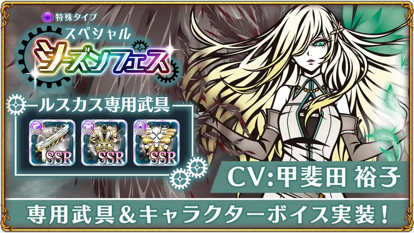 「スペシャルシーズンフェス」ではTHE CHASER初のボイス実装となる新キャラクター「【顕現せし黒闇天】ルスカス(CV.甲斐田裕子)」が登場いたします。