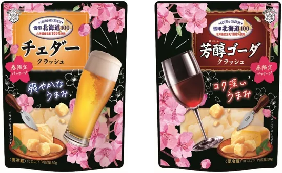 雪印メグミルク株式会社(本社:東京都新宿区、代表取締役社長:佐藤 雅俊)は、『雪印北海道100 芳醇ゴーダ クラッシュ』、『雪印北海道100 チェダー クラッシュ』(各50g)の春限定のパッケージを、全国にて2023年1月中旬より4月中旬(予定)まで展開します。